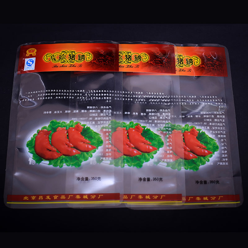 我公司承制的包装袋透明度好,彩印图案清晰,包装袋柔韧度强、封口强度牢、防渗漏,耐跌落、耐腐蚀等特点不脱层,不起泡,被广泛应用在各种肉制品、海产品、豆制品、粽子产品等包装上!可根据客户要求设计印刷各种图案和logo,我公司拥有先进的自动在线检测设备和完善的检测体系,保证每一批产品的质量!